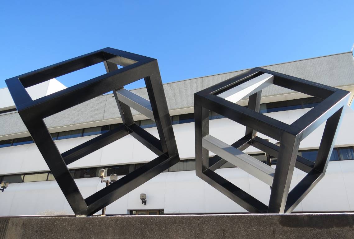 A defining figure in the field of constructive geometric art in Québec, Pierre Landry was part of this new generation of 1960s artists who enriched and contributed to the evolution of the aesthetic historical concept of constructive geometrical art of the early 20th century. He played an important role in the arts development in Mauricie, teaching sculpture for 30 years and being one of the founders of the Visual Arts Department and Art gallery of the Université du Québec à Trois-Rivières (UQTR). Throughout his career, he invested himself in the creation of various works integrating art to architecture in the City of Trois-Rivières, among others “Le couple”, two monumental cubic structures located at the UQTR’s main entrance.