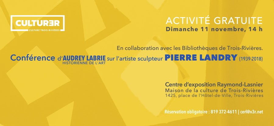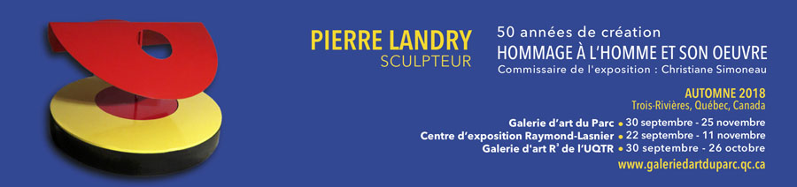 My sincere thanks go to Pierre Landry for his profound friendship, his great complicity and his availability until the last moments of his life. I would also like to thank his children Anouk, Isabelle et Étienne for their support, Lise Barbeau for her much-appreciated help, Marie-Andrée Levasseur, Marie-Eve Bérubé and the team of the Raymond-Lasnier Exhibition Center, Lorraine Beaulieu and Philippe Boissonnet of the R3 Art Gallery, Lynda Baril and Audrey Labrie of the Biennale nationale de sculpture contemporaine for their useful collaboration, video artist Carolane Saint-Pierre and Yves Brodeur for the remarkable video about the sculptor, poet Pablo Poblete for his precious and judicious advice, Gaston Bellemare and Maryse Baribeau of the Festival International de la Poésie, Monique Lamothe, Pierre Landry’s partner for his last three years of life, as well as the members of the Board of Directors and team of the Galerie d’art du Parc for their fruitful participation. The exhibition was also made possible thanks to the financial assistance of the Conseil des arts et des lettres du Québec, the Ministère de la Culture et des Communications du Québec, the Culture Trois-Rivières, the Syndicat des chargés de cours of UQTR, Université du Québec à Trois-Rivières, Pierre Landry’s son, Étienne Landry, and his son-in-law, Michel Lavergne and several private and public partners.