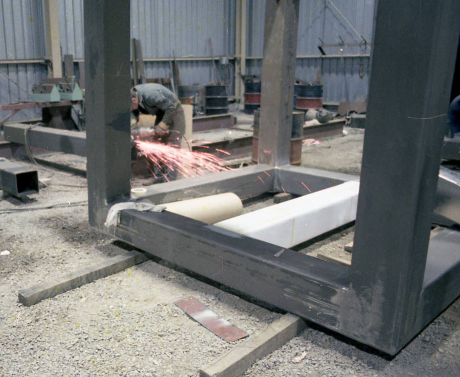 Le sculpteur Pierre Landry, en pleine conception de son œuvre monumentale ‘Le couple’, 1978.