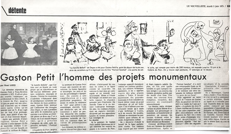 Souvenir d’une exposition présentée à la GAP en 1975 ... L’artiste père dominicain GASTON PETIT né à Shawinigan en 1930, pratique son art, voyage dans et travers l’art depuis plus de 60 années.