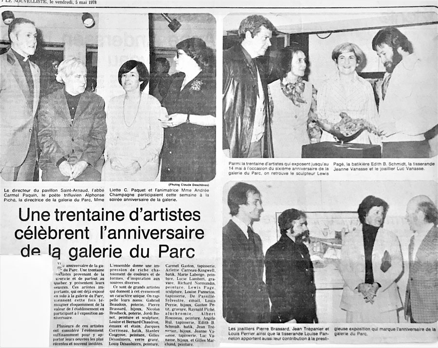La Galerie d’art du Parc célèbre son cinquième anniversaire en 1978. Pour souligner l’occasion, plus d’une trentaine d’artistes de la région et du Québec participent à des expositions durant cette année de festivités.