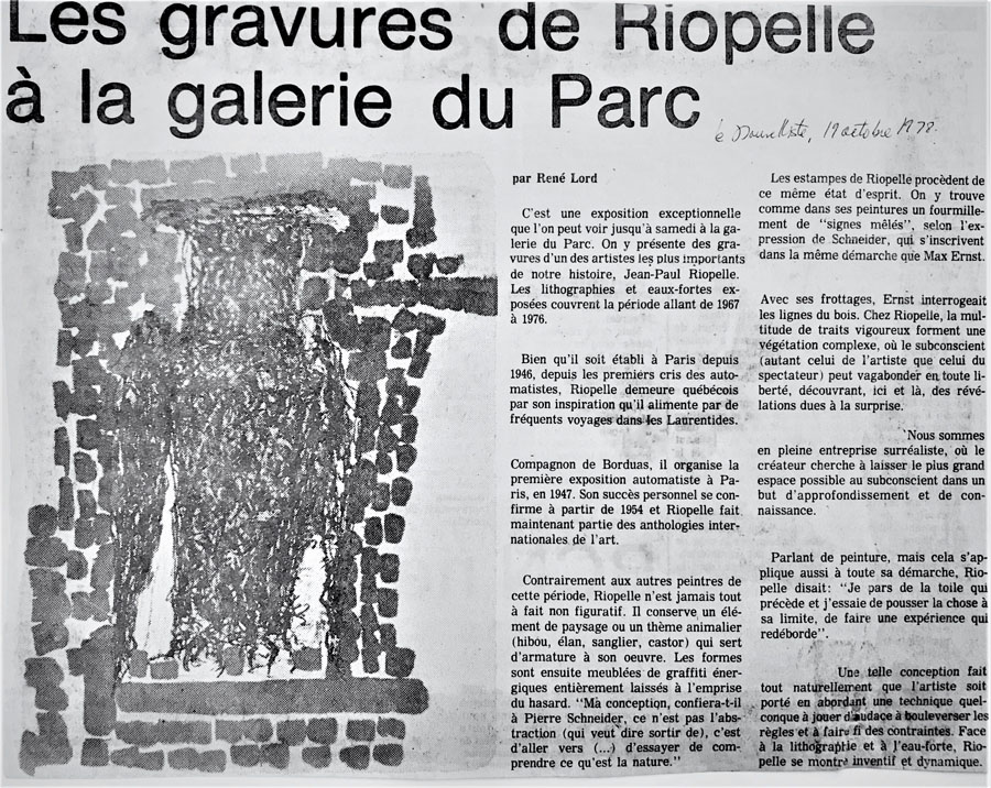 Gravures de Jean-Paul Riopelle à la Galerie d’art du Parc