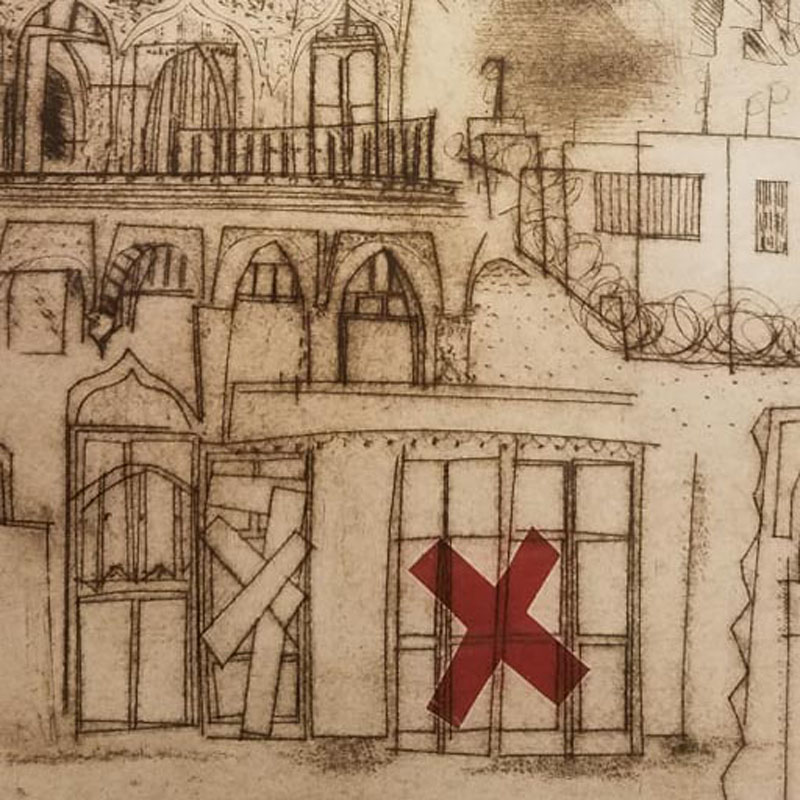 Sa série Borderlands, présentée dans le cadre de la biennale, est le résultat direct des intérêts particuliers de l’artiste. La série est composée de sept paysages urbains, de face ou en vol d’oiseau, dans lesquels le style de dessin naïf de l’artiste vient mélanger les perspectives et où la cacophonie de formes brutes n’offre aucun repos à l’œil. Mur de Berlin, occupation Zioniste, Nueva entrada : Lilburn explore le concept des frontières et murs qui ont séparé ou séparent encore les territoires politiques. Selon l’artiste, les frontières permettent à l’humain d’assouvir son besoin fort d’identification et d’appartenance à un endroit, un pays, mais elles peuvent également nous emprisonner et nous priver de notre liberté. Avec sa série Borderland, Lilburn rend hommage aux millions de victimes de conflits politiques ou religieux qui ont été forcées de franchir les frontières de leur territoire identitaire, qui leur est maintenant hostile et méconnaissable.