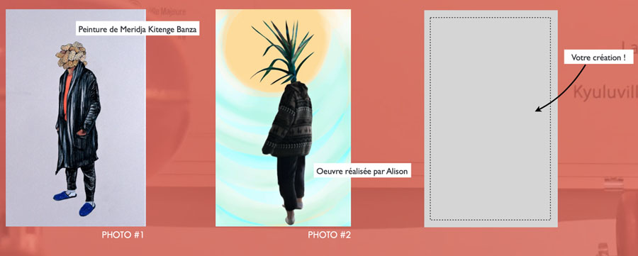 On vous propose une activité artistique à la manière des peintures de Meridja Kitenge Banza ! On retrouve dans l'installation de L'Union des États deux autoportraits de l'artiste dans lesquels son visage est remplacé par des éléments qui lui sont identitaires.