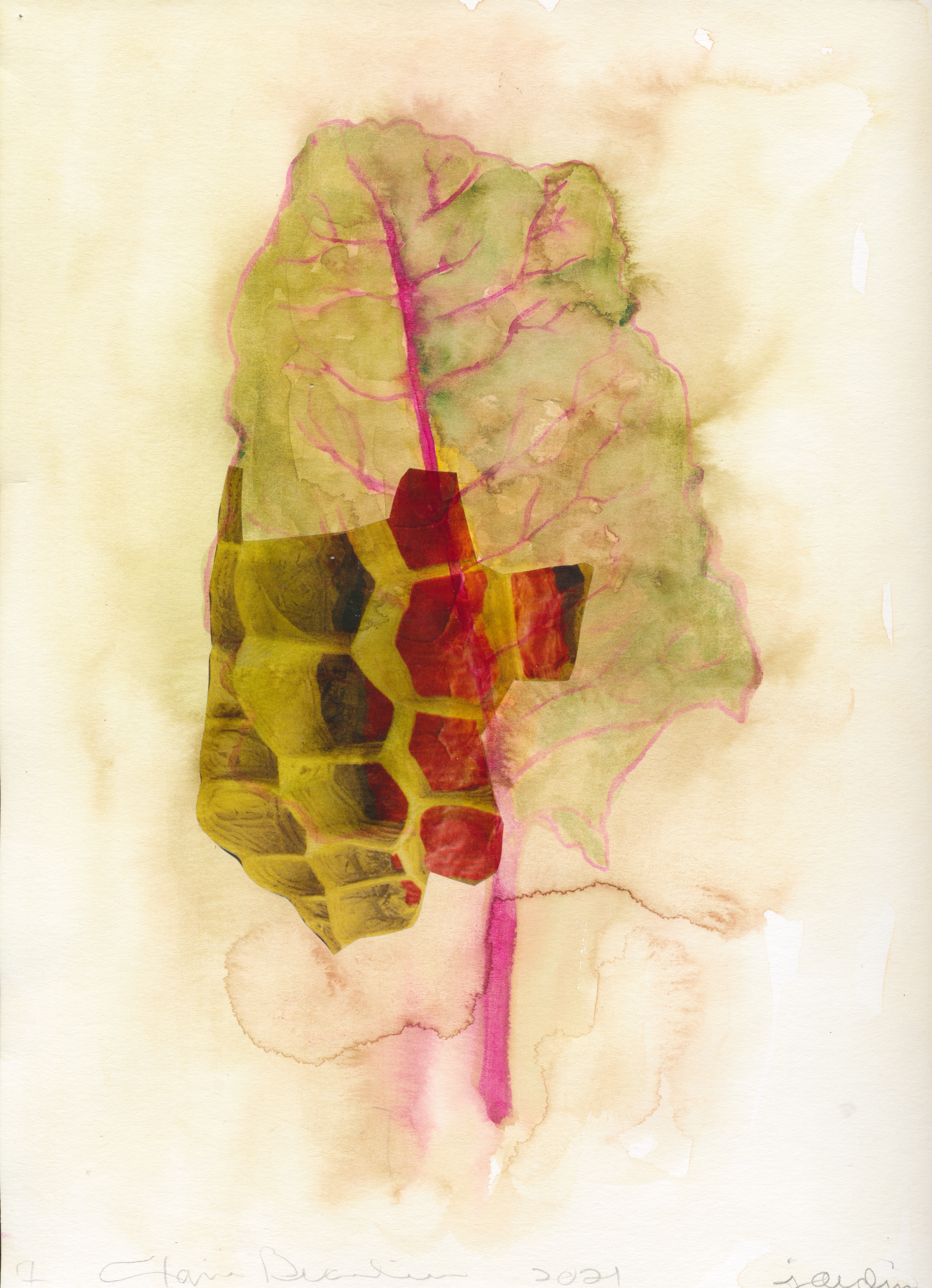 Le jeu de la transparence et de l’opacité est aussi au cœur des aquarelles, hybridées d’impressions numériques et d’acétates qui se superposent, voilent et dévoilent. En particulier, des fragments d’œuvres tirées de l’histoire de l’art viennent affirmer dans les images l’équivalence entre la nature et l’acte créateur pour Claire Beaulieu. Pour l’artiste, l’art est le pendant de la nature en ce que l’un et l’autre portent en eux des potentialités infinies, des énergies inépuisables. En laissant visibles les œuvres qui ont nourri sa démarche, elle reconnaît en quelque sorte le continuum de la création, où une chose en appelle une autre dans un cercle sans fin. Tout ceci se passe par couches ou strates, par ajouts et collages, que l’artiste explore tout au long du processus de travail. Comme la serre du botaniste, l’atelier de Claire Beaulieu est toujours en évolution, en foisonnement d’œuvres baignées dans la lumière, propices à des moments de contemplation, des temps d’arrêt, des instants de découvertes. En exposition, la multiplicité, la sérialité et les variations rendent compte d’une démarche en perpétuel mouvement, nourrie par la quête de sens, la compréhension de notre monde et un rapport incarné à ce qui nous entoure.