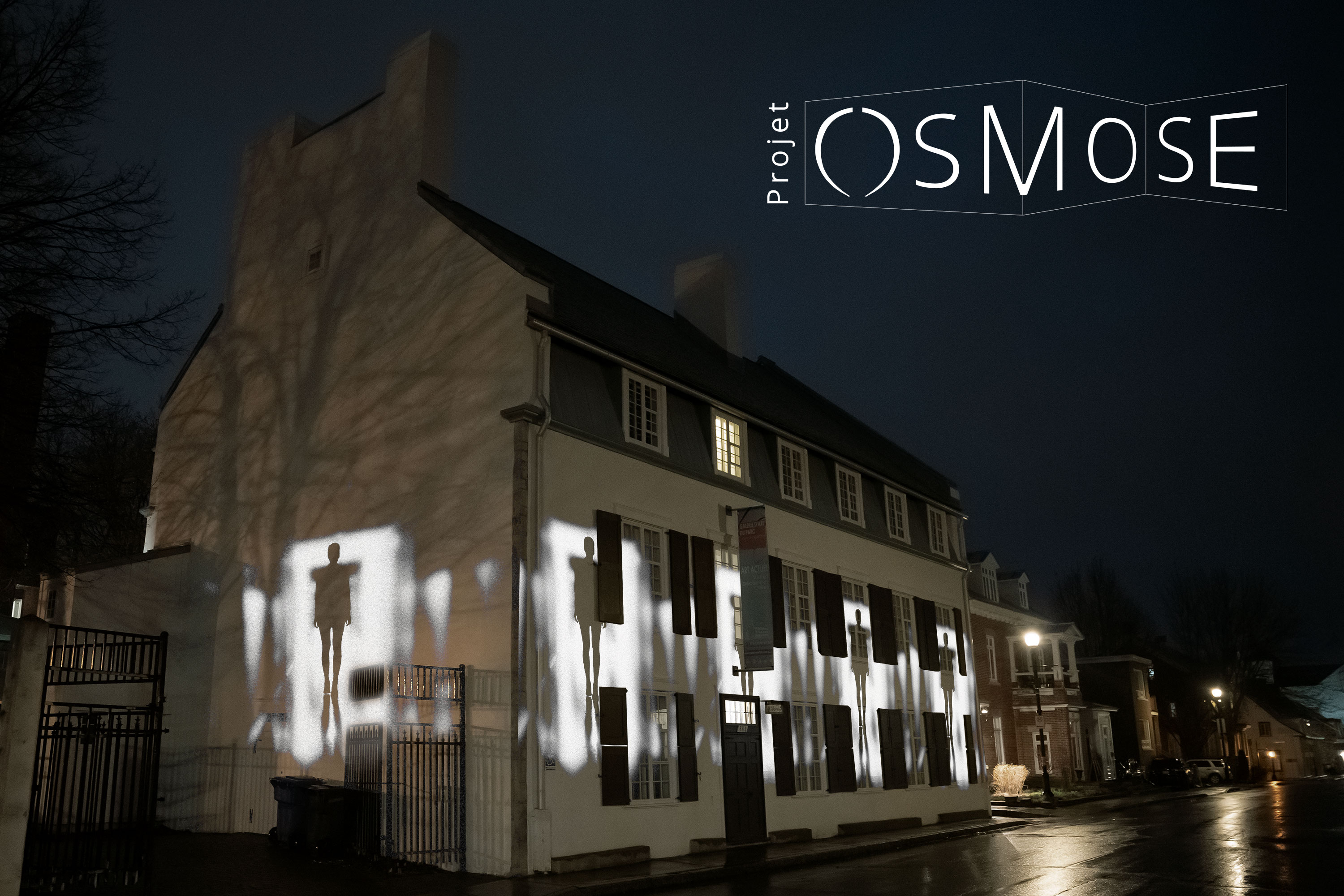 Sous la direction artistique de Olivier Ricard, les œuvres de Emmanuel Auclair, Justine Bellefeuille, Lucas Blais Gamache, Romane Dumas Kemp, Gabriel Mondor, Christine Ouellet, Olivier Ricard et Catherine Rondeau seront présentées en boucle à la tombée de la nuit. Explorant les concepts de contemplation et de narrativité, Osmose mettra en valeur un des joyeux du centre-ville, le Manoir de Tonnancour, par le mapping vidéo.